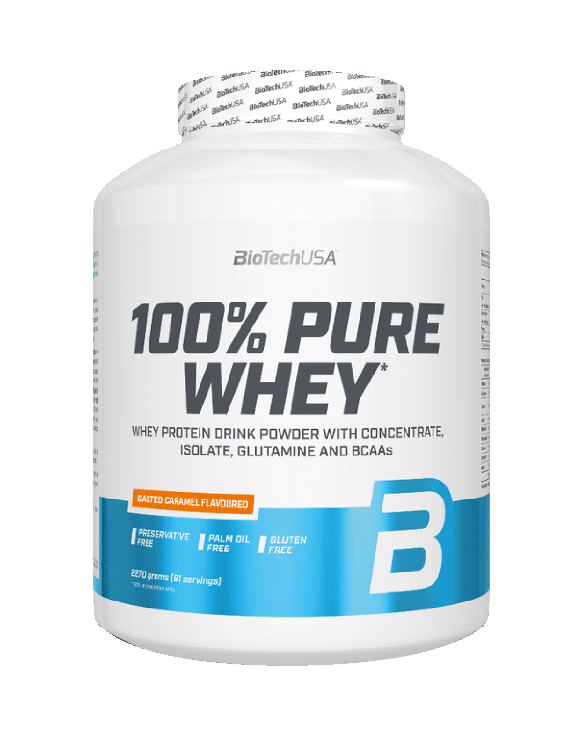 | 100% Pure Whey is a high-quality protein powder with high biological value and its protein content is 100% derived from whey protein. It is a combination of whey concentrate, whey isolate, and added amino acids (L-glutamine, L-arginine and BCAAs). It fuels and repairs muscles quickly, maximizing lean muscle growth, increasing protein synthesis and speeding up the recovery process. GLUTEN FREE. PALM OIL FREE. |