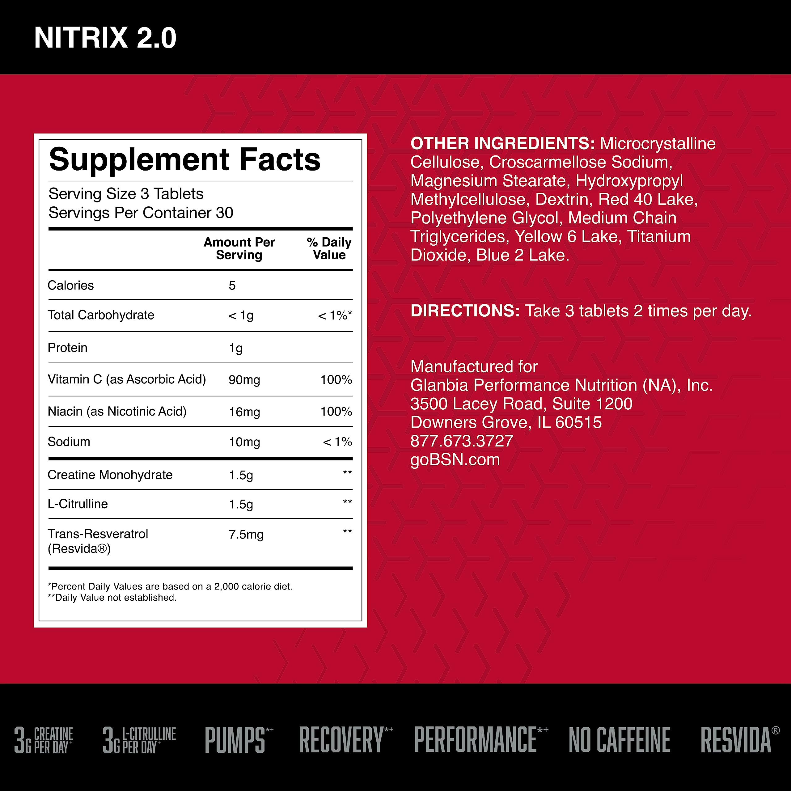 BSN, Nitrix 2.0, Concentrated Nitric Oxide Precursor