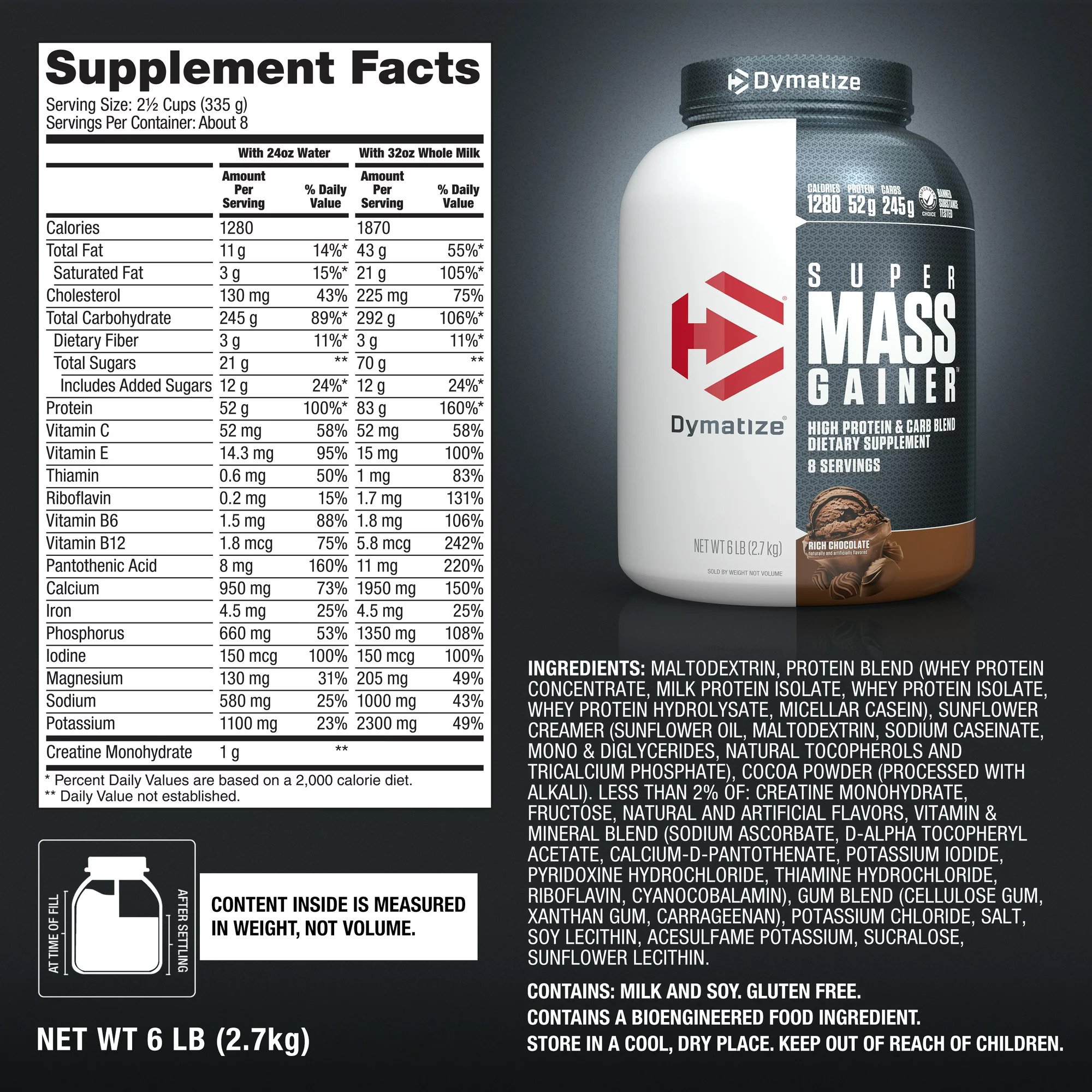 Dymatize® SUPER MASS GAINER™ is a premium mass gainer with an appropriate calorific profile designed to meet the particular needs of bodybuilders, powerlifters and hard gainers in the bulking phase.