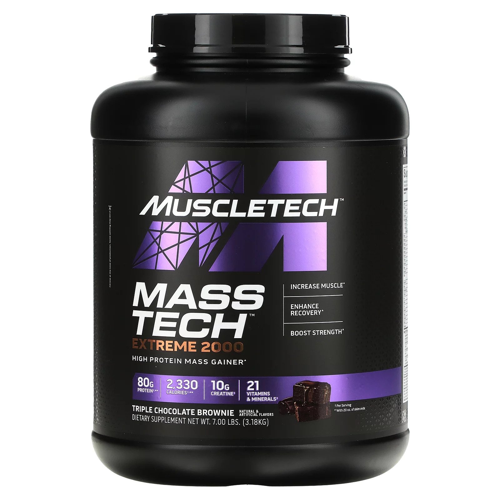 MASS-TECH® EXTREME 2000 delivers more protein per serving than most other mass gainers available on the market. With a whopping 80g of premium protein (when mixed with 20 oz. of skim milk), your body will have all the building blocks it needs to build the size and muscle you’re looking for. In addition, unlike many other mass gainer formulas, MASS-TECH EXTREME 2000 contains only high-quality, milk-derived protein sources with the highest biological value.