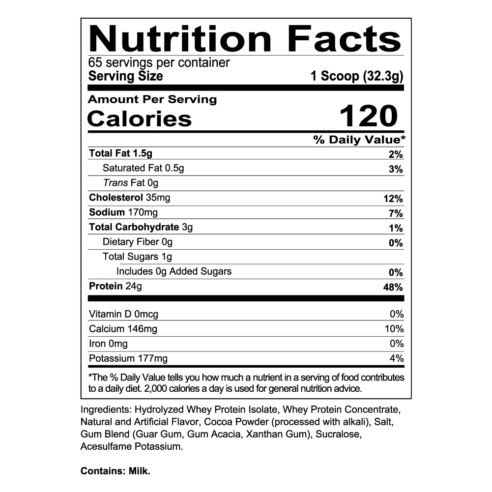 Protein Concentrate, Natural and artificial flavors Red Russet cocoa powder,